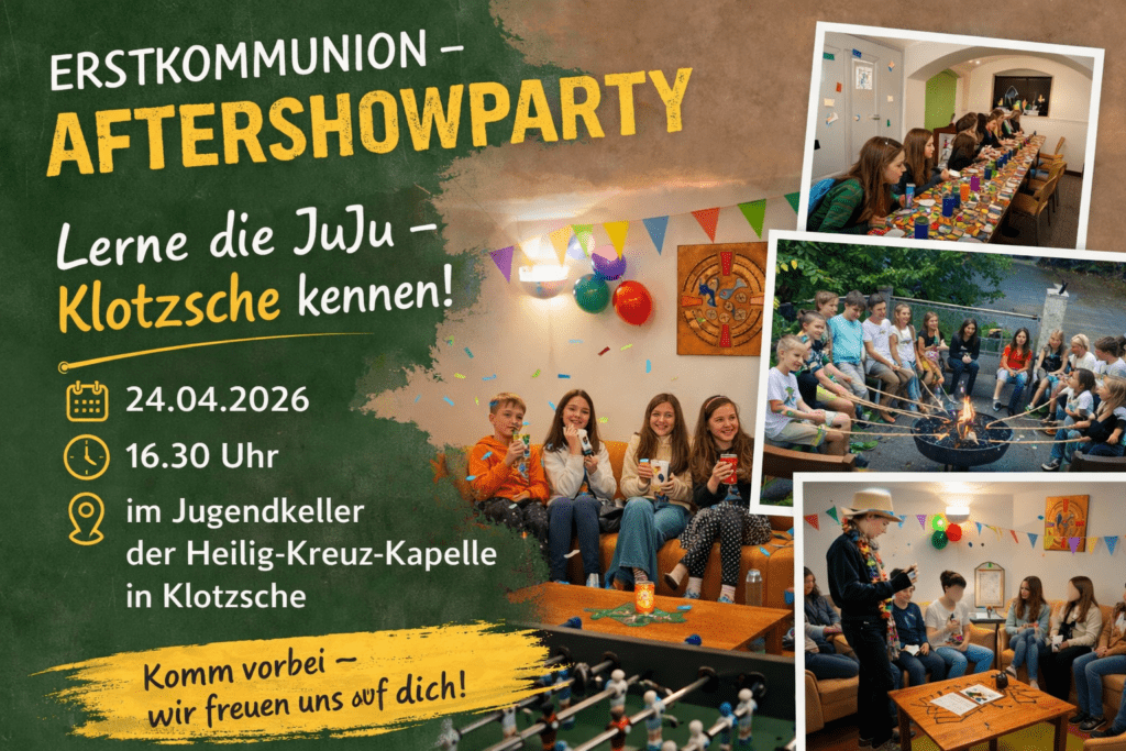 Du kennst schon ein paar Gesichter aus deiner Erstkommunion-Vorbereitung. Perfekt, um gemeinsam den nächsten Schritt zu gehen – und die JuJu Klotzsche kennenzulernen!