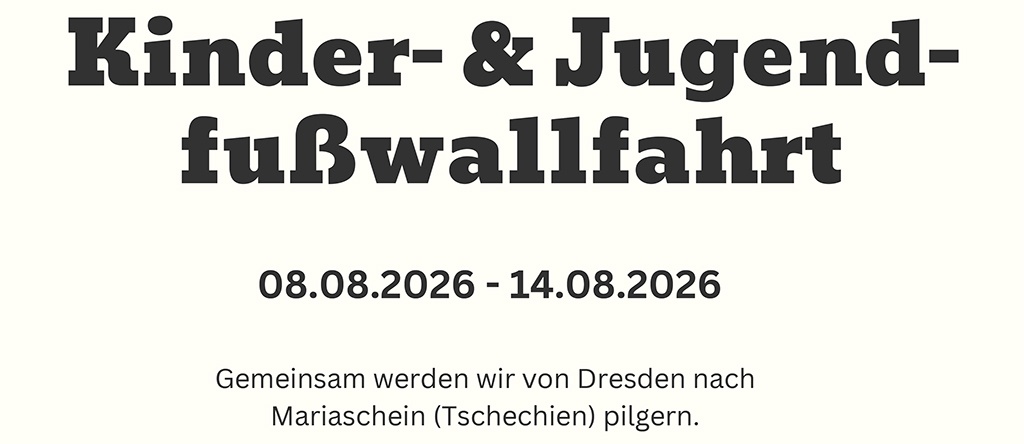 Weitere Informationen incl. Anmeldung hier: Kinder- und Jugendfußwallfahrt